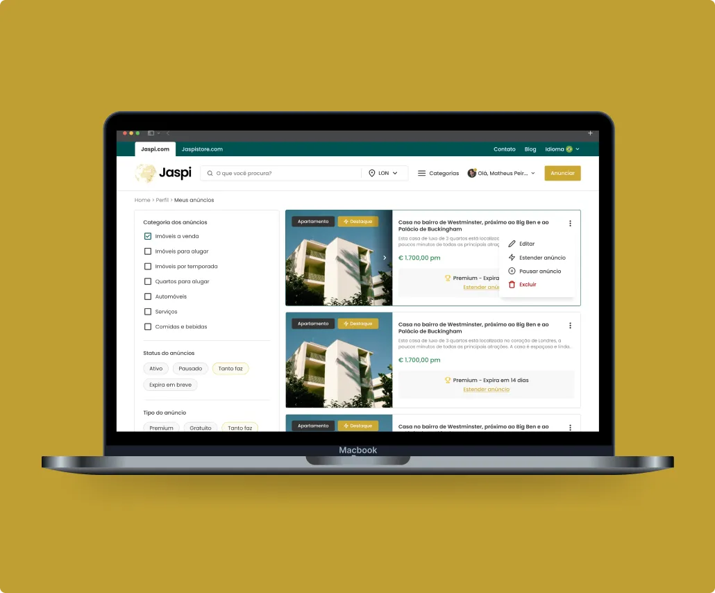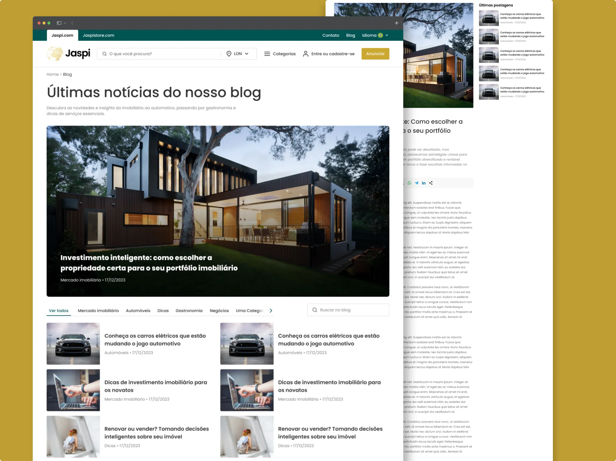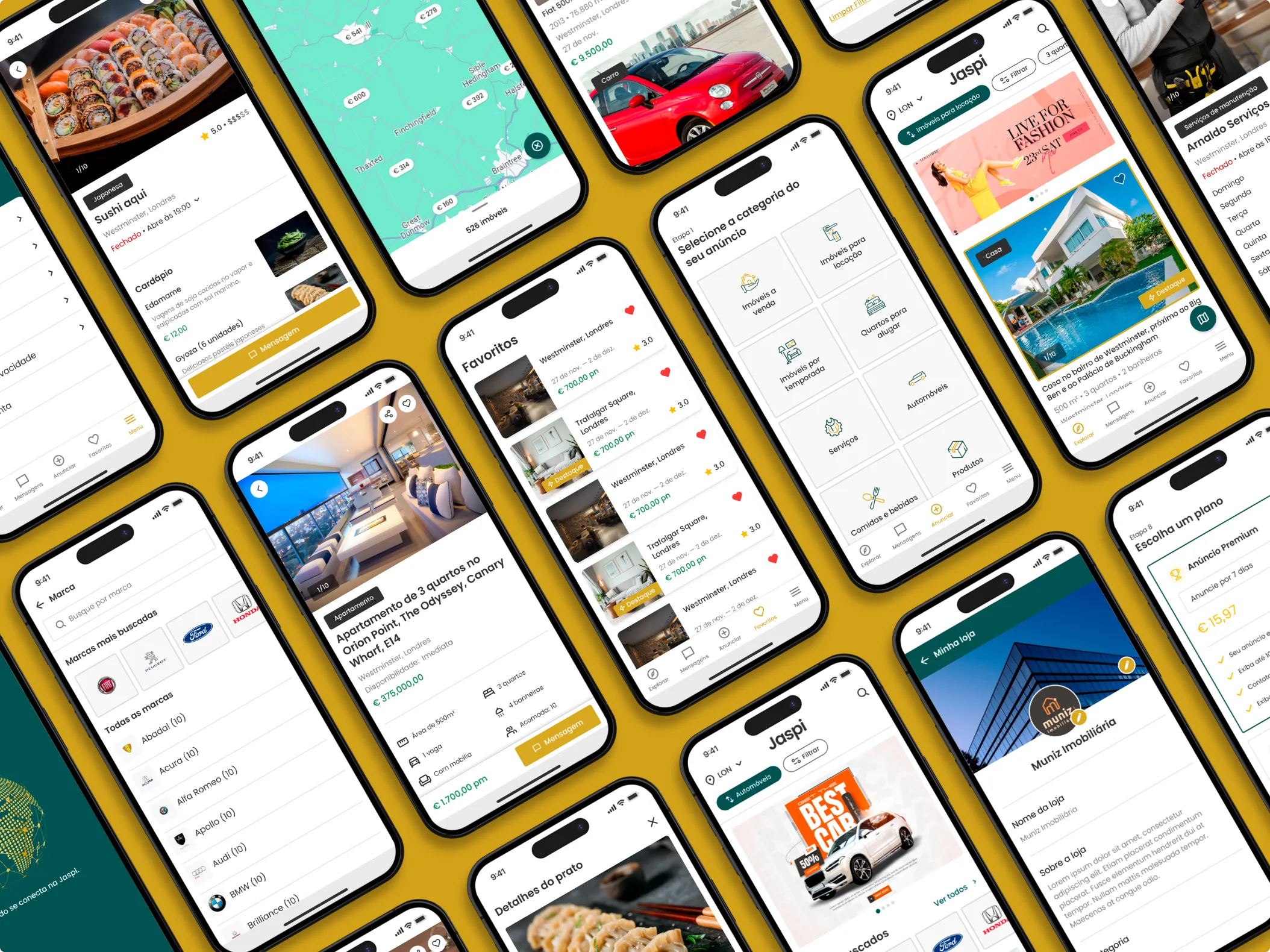 A Jaspi é um superaplicativo com foco na comercialização e aluguel de imóveis, além de oferecer uma variedade de produtos e serviços, que incluem venda de veículos, alimentos e prestação de serviços gerais.