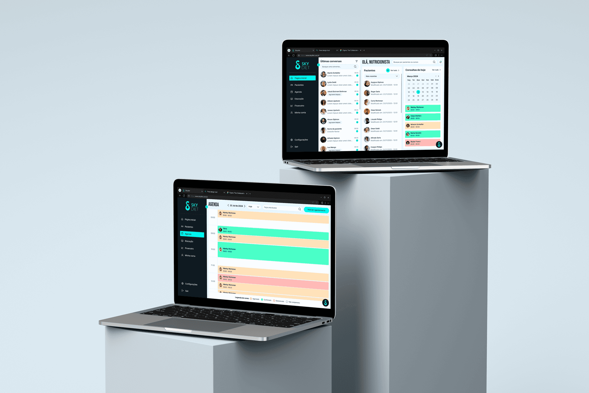 O Skydiet é uma plataforma inovadora que conecta nutricionistas e pacientes, facilitando o acompanhamento nutricional de forma digital. O projeto consistia no desenvolvimento de dois aplicativos (um para nutricionistas e outro para pacientes) e dois sistemas web (um para nutricionistas e outro para gerentes da plataforma). Como UX/UI Designer, fui responsável pelo design de interface (UI) e pela condução de testes de usabilidade no aplicativo do paciente, além de propor melhorias contínuas para garantir uma experiência intuitiva e acessível.